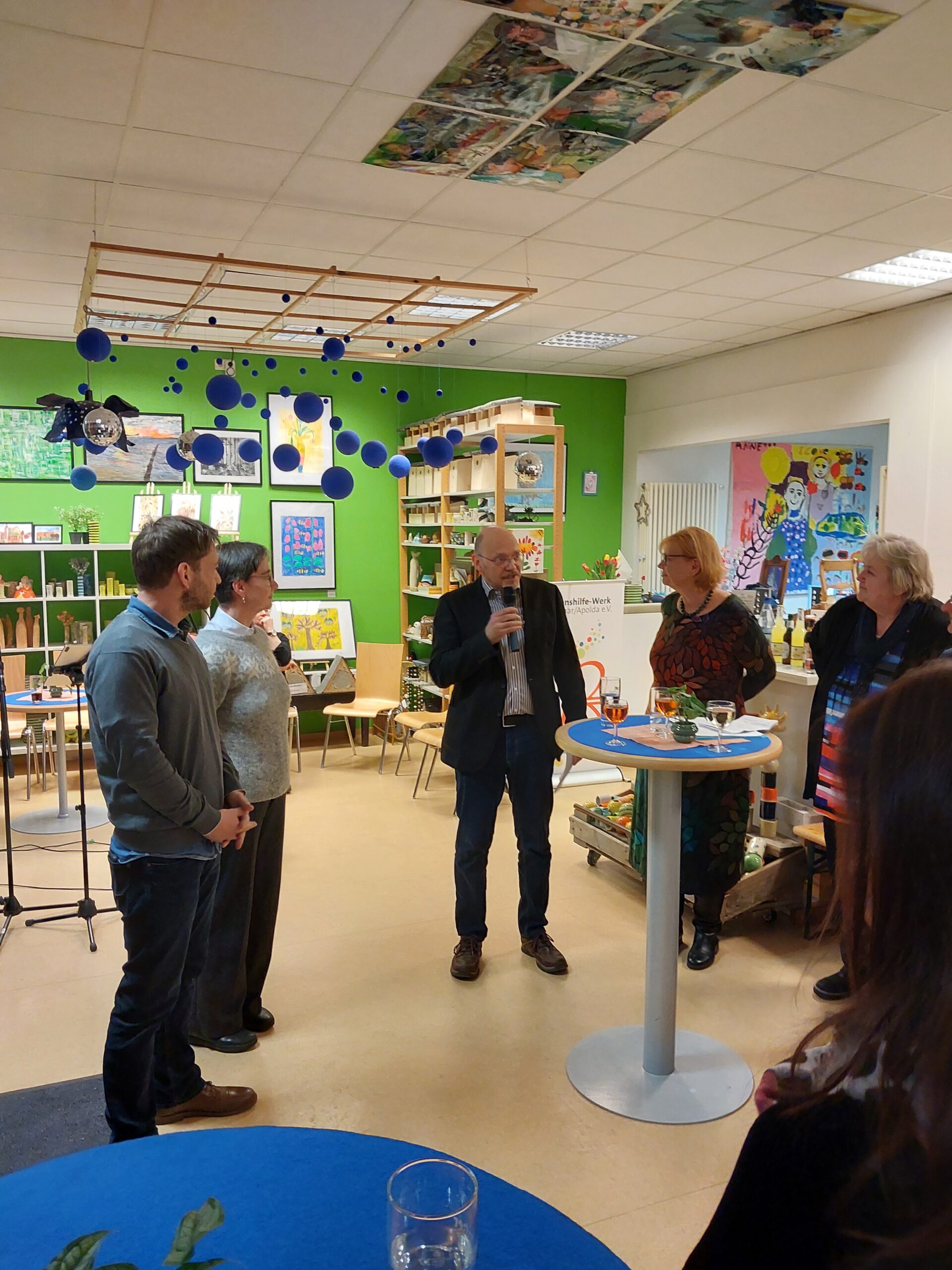 Am 16.10. überreichten Katja Heinrich, Andreas Kotter und Peer Lück den Paritätischen Ehrenamtspreis 2023 an Jürgen Borchert im Lebensart am Palais. Der Preisträger ist in vielen Tätigkeiten und Funktionen im Dienste der Inklusion engagiert. Uns im LHW ist Jürgen Borchert in erster Linie als Mitgründer und Aufsichtsratsmitglied und durch seine eindringlichen Projekte zur Erinnerungskultur ganz eng verbunden und hoch geschätzt. Wir gratulieren von ganzem Herzen zu dieser hochverdienten Auszeichnung! Und wir schließen uns voll umfänglich der Laudatio von Katja Heinrich, Geschäftsführerin unseres Lebenshilfe-Landesverbandes an, die wir hier veröffentlichen dürfen: