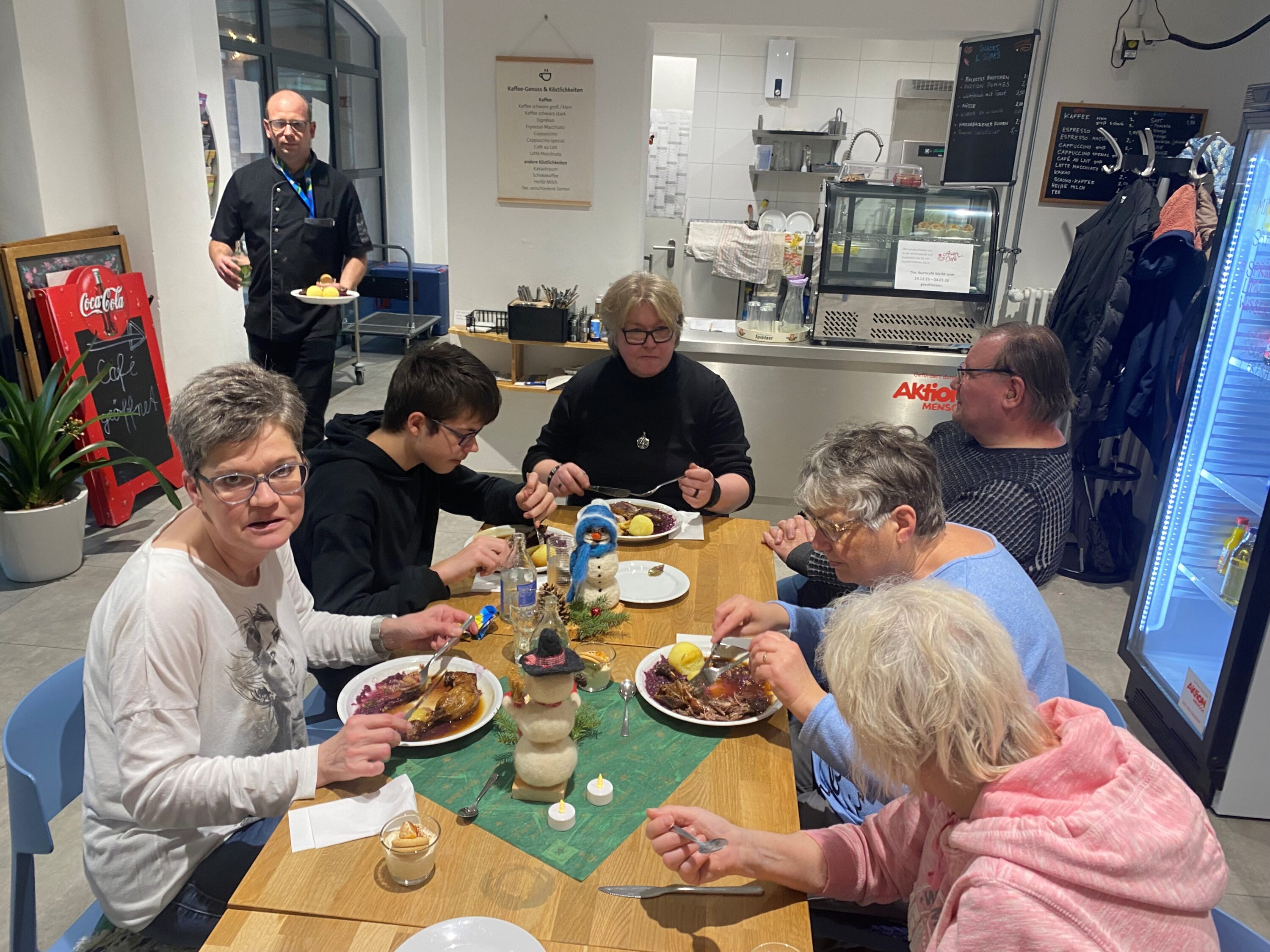 Zum Schluss gab es bei einem kleinen Snack und Kaffee noch die Gelegenheit für Austausch und Gespräche. Unsere Projektgruppe hatte auch einen Stand mit Info-Material, wie zum Beispiel das Buch ANDENKLICH. Eine Projektgruppe im LHW hat es gemeinsam mit einer Historikerin, Thea Jacob, erstellt. Es erzählt sehr ausführlich und anschaulich über unser Herzensprojekt. Und unter anderem auch von Naftali Fürst.