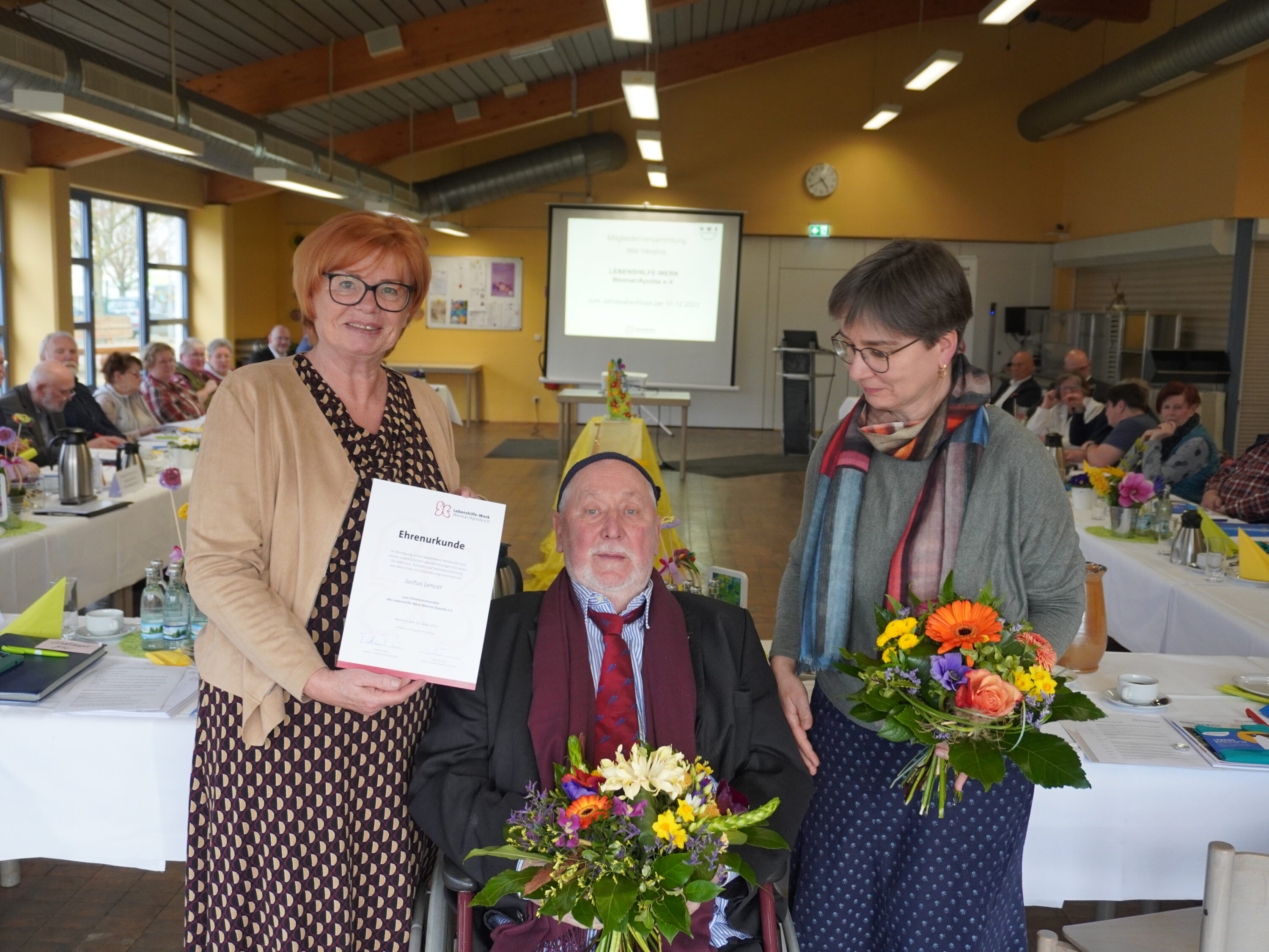 Die Vorstandsvorsitzende des Lebenshilfe-Werks, Rola Zimmer, erinnerte an wichtige Weichenstellungen in der Zeit von Justus Lencer: „Die Einrichtung des Galerie-Ladens lebensArt am palais sowie das lebendige Gedenkprojekt 1000 Buchen gehen auf seine Initiative zurück. Unter seinem Vorsitz gelang es auch, im Jahr 2010 die erste inklusive Ganztagsgrundschule Anna Amalia in Weimar zu gründen, in der Kinder mit und ohne Behinderung gleichberechtigt lernen. Wir freuen uns, dass uns Justus Lencer mit seiner Erfahrung in Aufsichtsrat im Verein und Stiftungsrat in unserer Stiftung Lebenshilfe erhalten bleibt“.