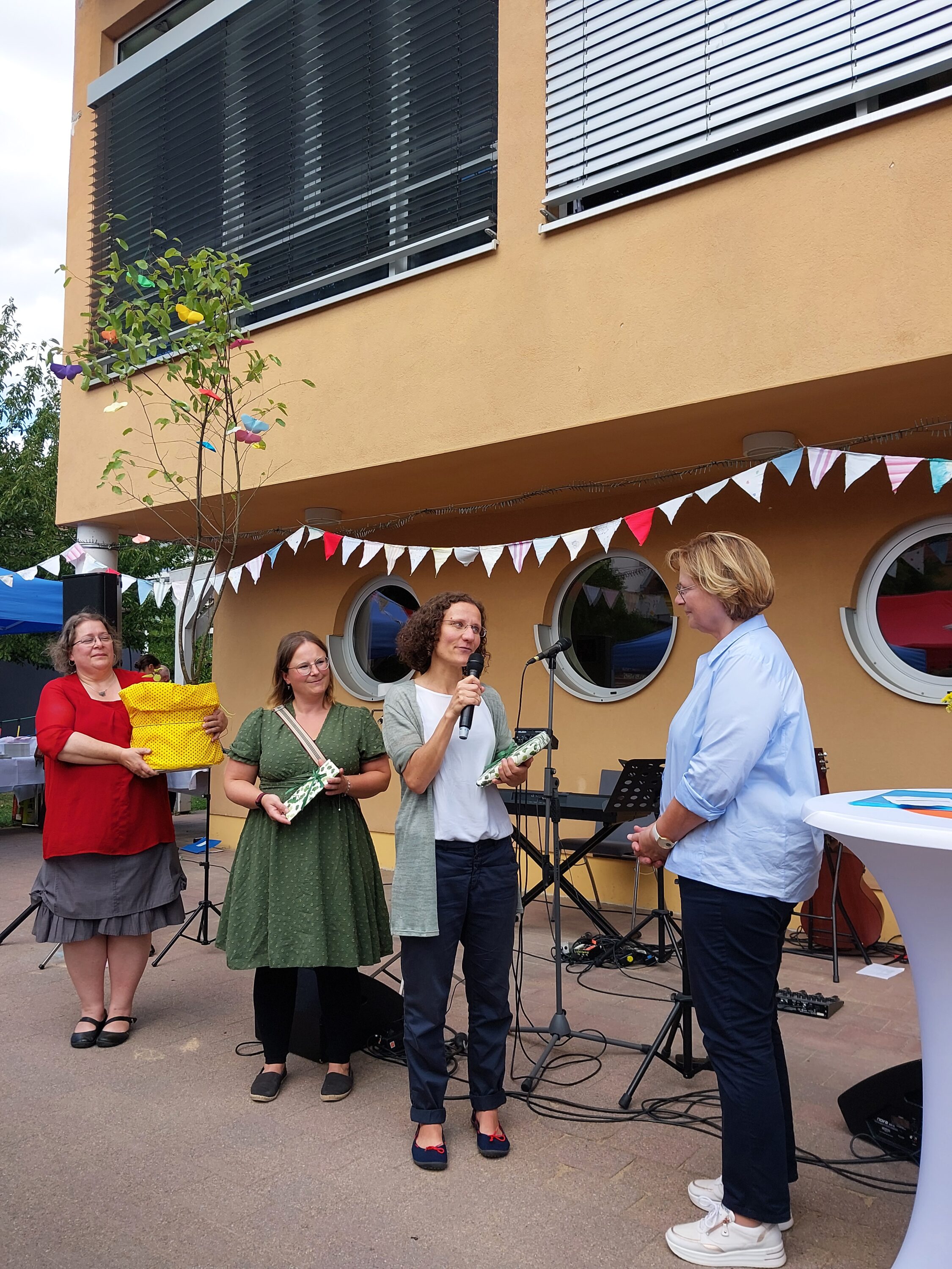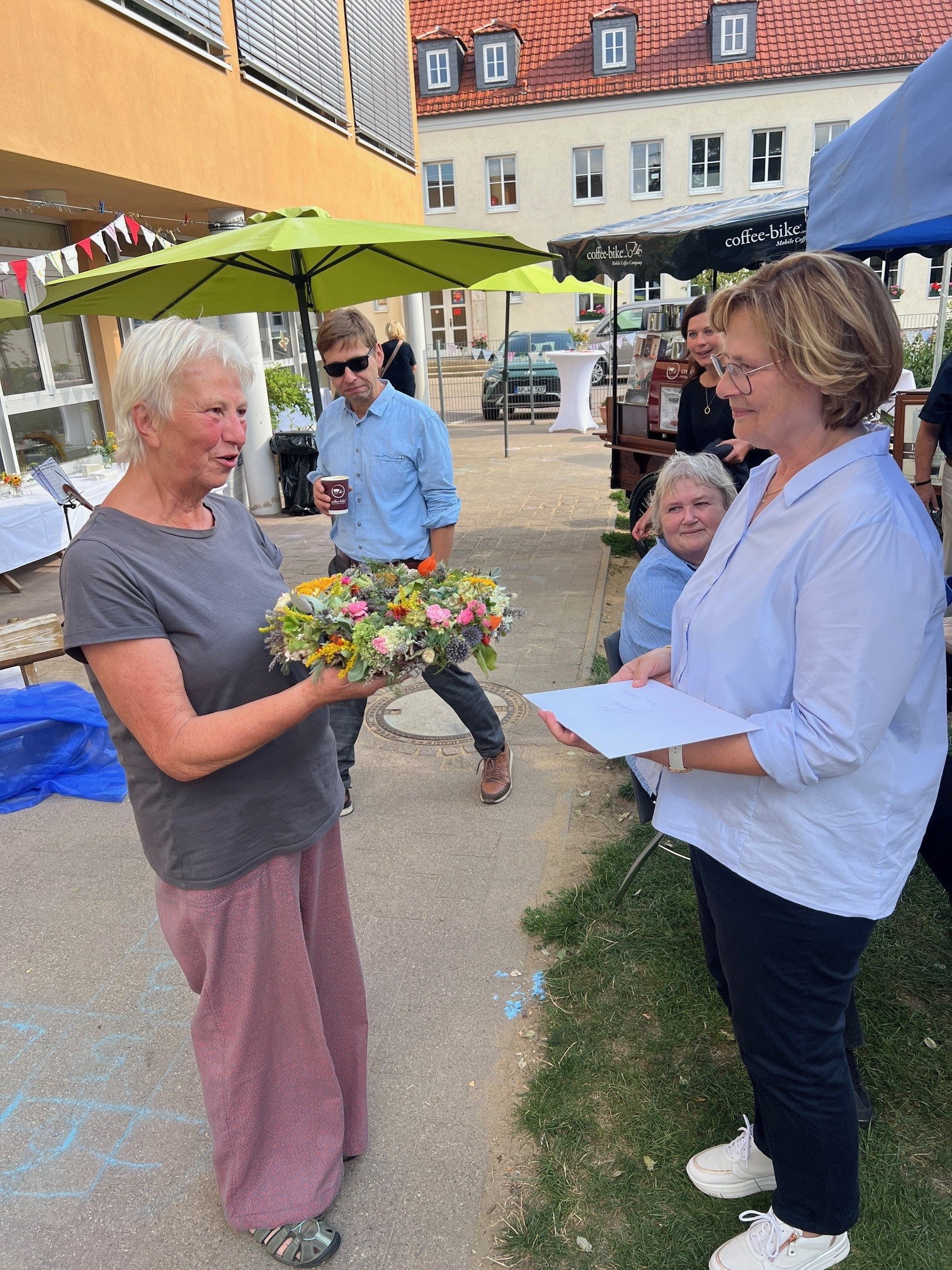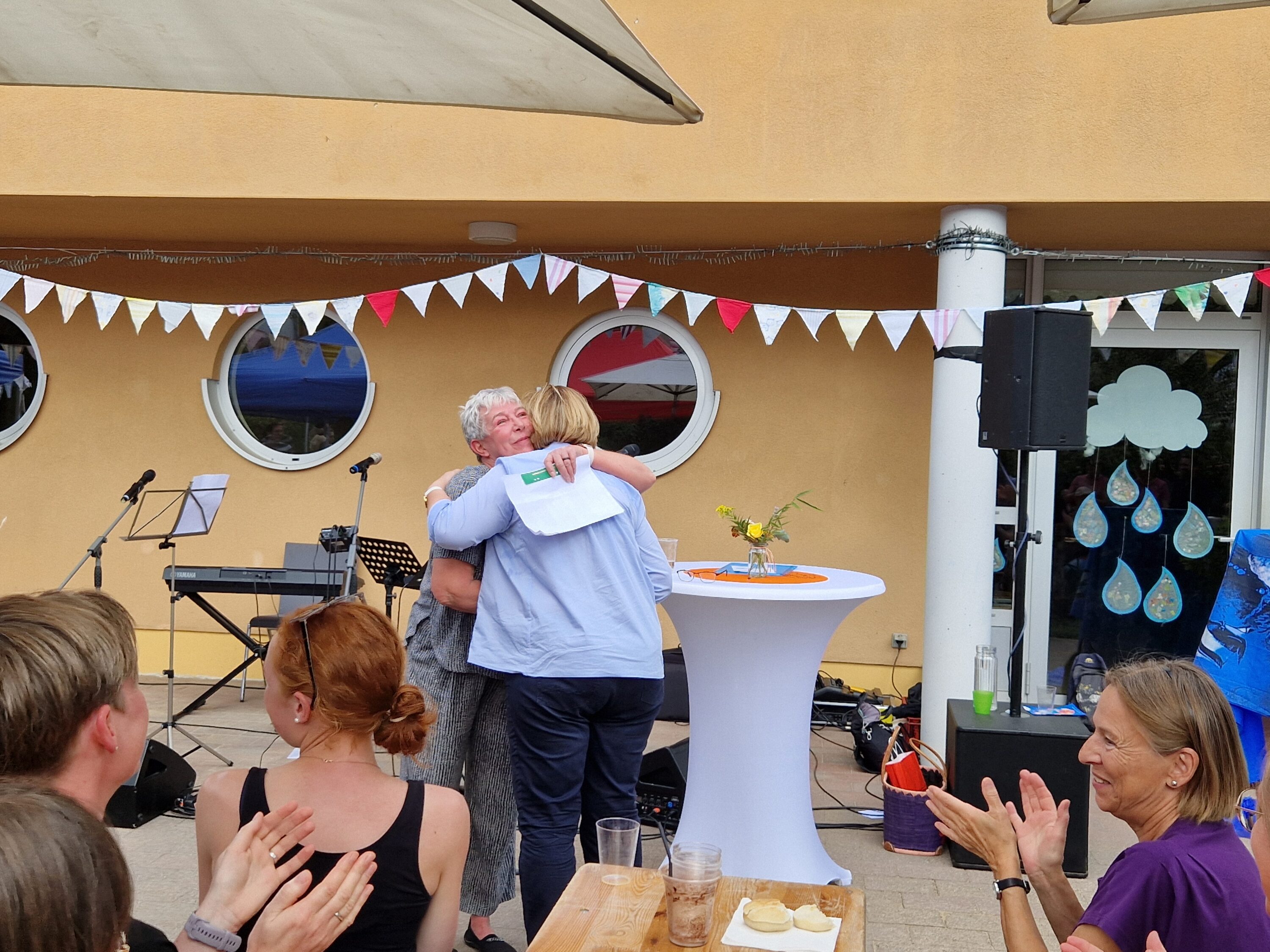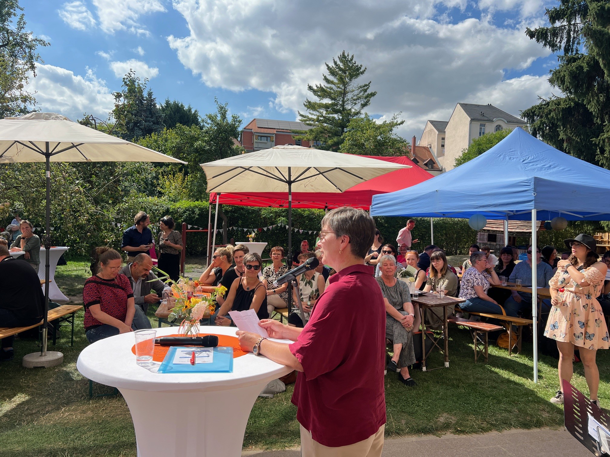 Am Donnerstag, den 21. August 2025, versammelten sich zahlreiche Gäste im Garten unseres Kiga Hufeland, um die Vorständin und langjährige Geschäftsbereichsleitung Familie und Bildung des LHW Gabriele Kießling zu würdigen und in den Ruhestand zu verabschieden. An diesem Ort hatte ihre berufliche Karriere vor mehr als zwei Jahrzehnten begonnen.