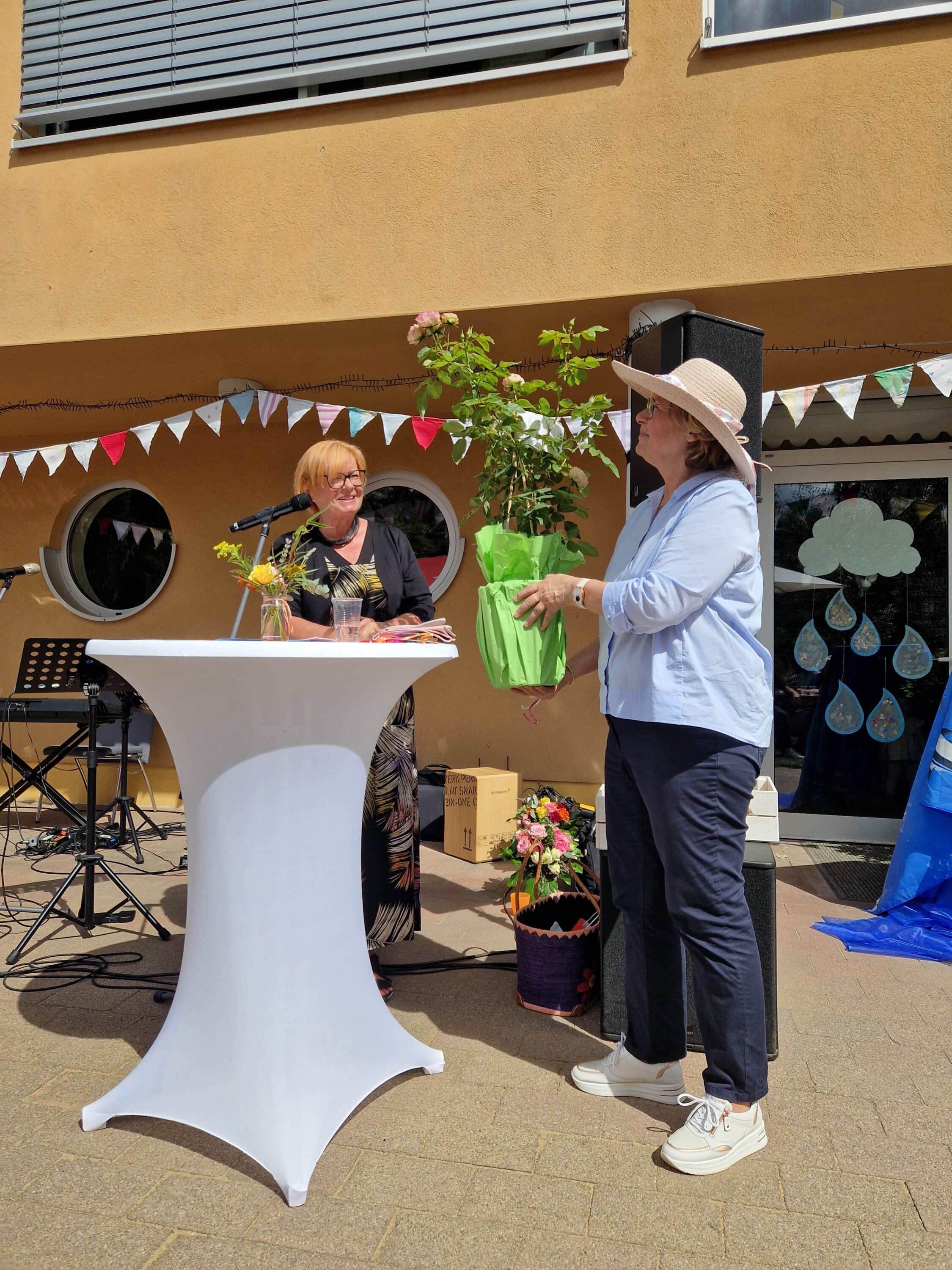 Mit einem symbolhaften Geschenk – einem Rosenstock, einem Hut, einer Rosenschere und Rosenhandschuhen – wurde Gabriele Kießling verabschiedet: als „Rosengärtnerin“, die mit Feingefühl und Klarheit gewirkt hat und als „Rose“ im Lebenshilfe-Werk, die weiterhin in Erinnerung bleibt.