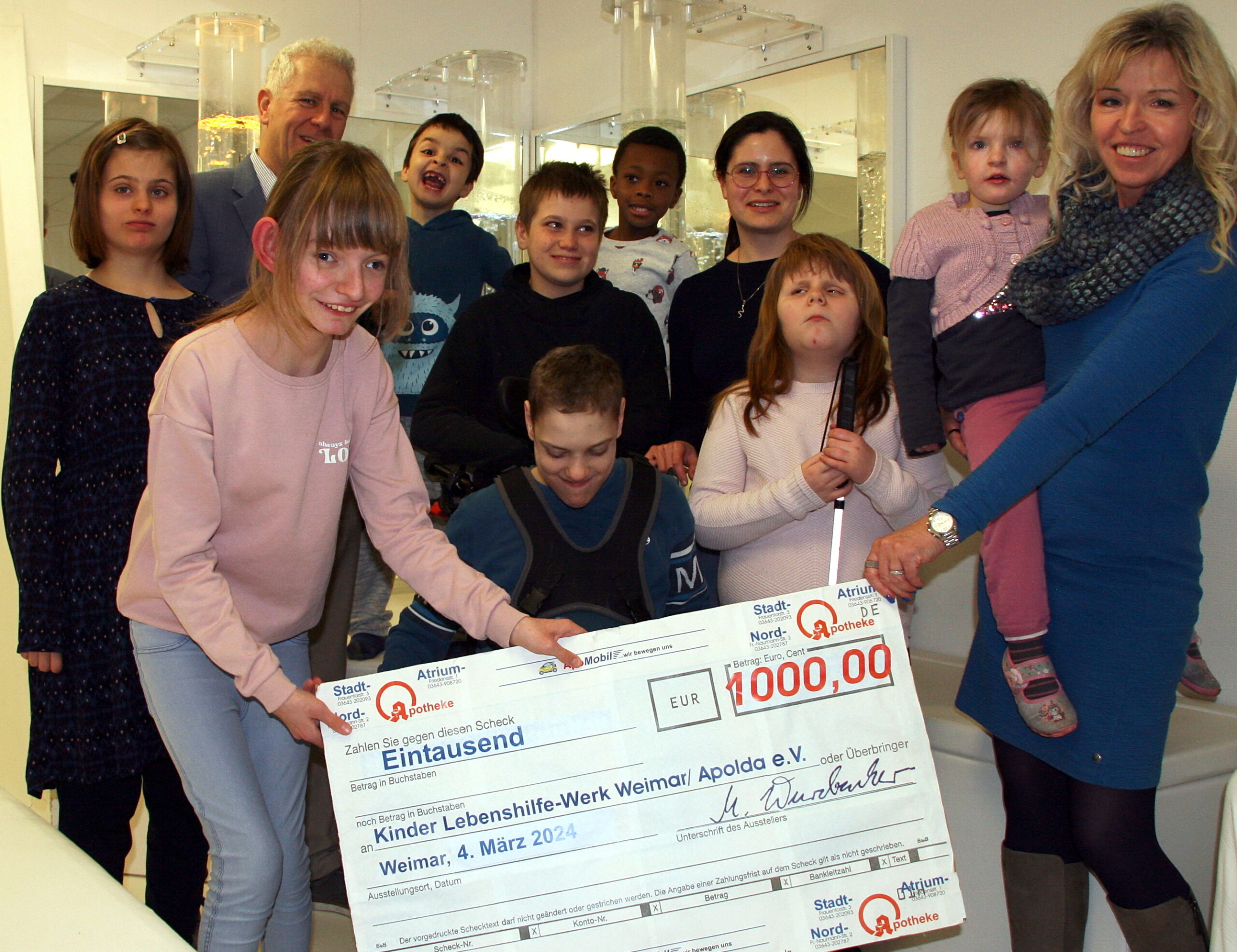 Markus Wurzbacher, Inhaber der Atrium-, Nord- und Stadtapotheke in Weimar, übergab in unserem “Haus bunte Wege” einen Spendenscheck über 1.000 €. Schon seit vielen Jahren unterstützt er zuverlässig unsere Wohnstätte für Kinder und Jugendliche in der Tiefurter Allee.