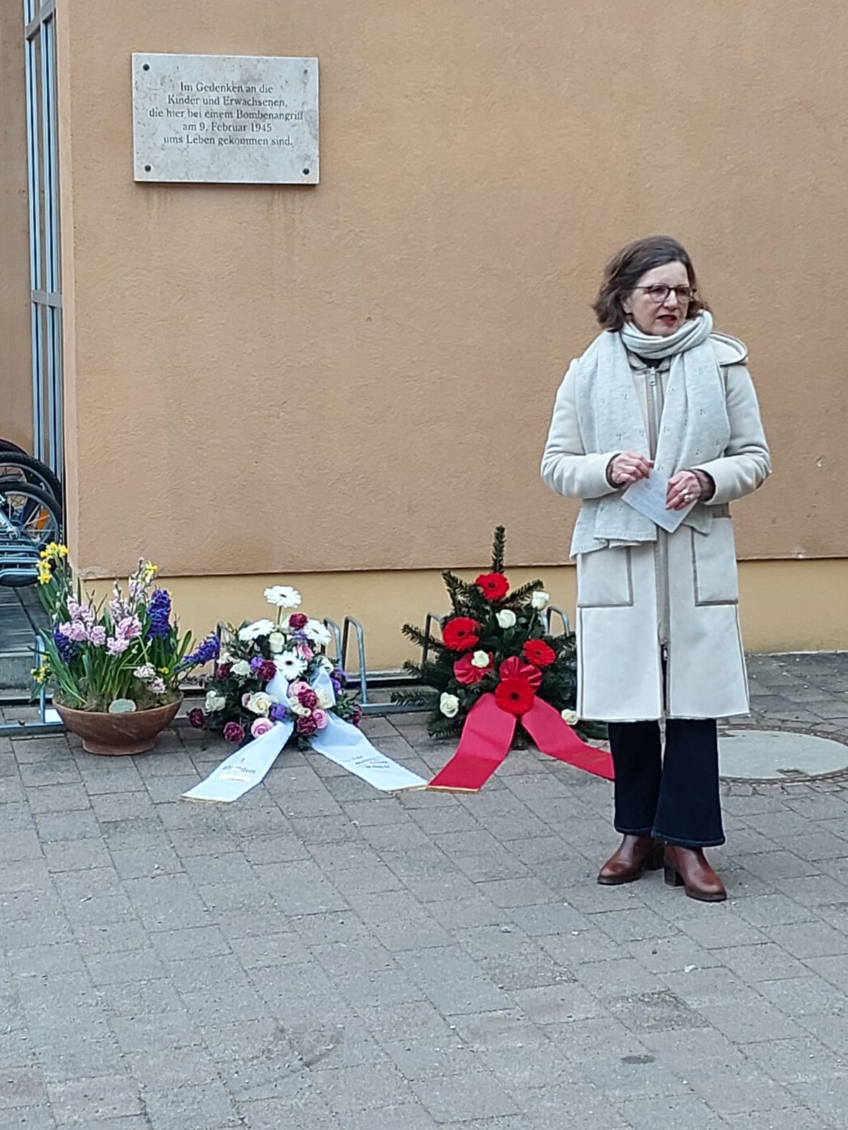 Das LHW gedenkt am 10. Februar der Toten des 9. Februar 1945 am Kindergarten Hufeland. Auch in diesem Jahr veranstalteten wir wieder eine öffentliche Gedenkveranstaltung. Neben unserer Vorstandsvorsitzenden Rola Zimmer sprachen Bürgermeister Ralf Kirsten für die Stadt Weimar sowie Dr. Claudia Kolb für die SPD Weimar. Abgerundet wurde das Gedenken im Beisein von Zeitzeugen mit einem eindringlichen Poetry-Slam-Beitrag von Alessandra Karlen. Im Anschluss lud Heike Wiechmann als Leiterin des Kindergartens Hufeland zum Gespräch bei einem Imbiss.