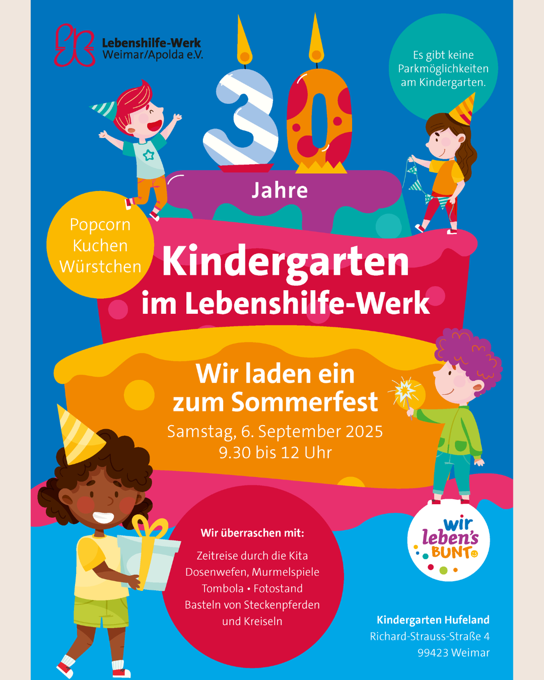 Kindergarten Hufeland: Sommerfest am 6. September – und 30 Jahre im LHW feiern!