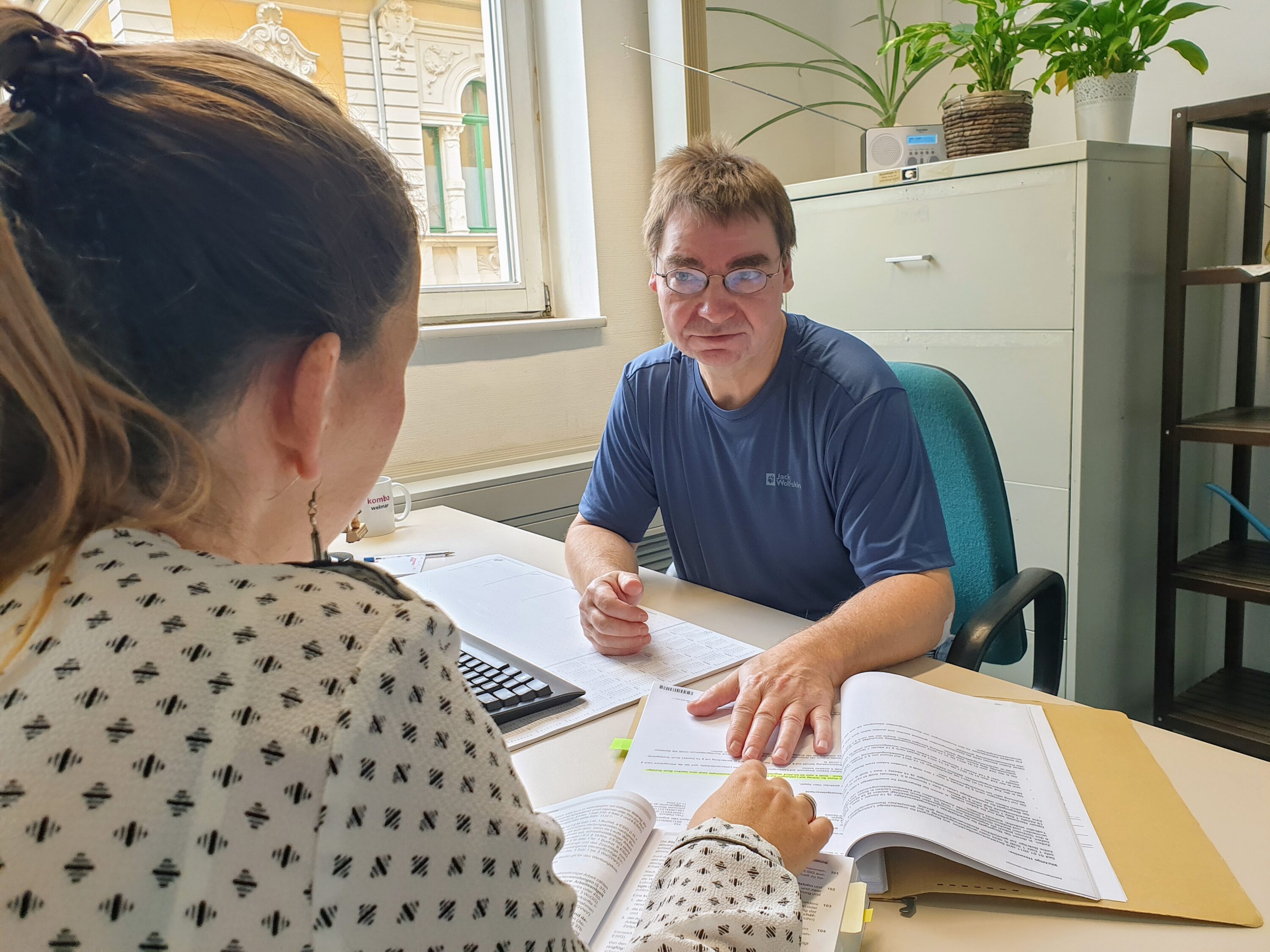 Auch das Lebenshilfe-Werk Weimar/Apolda nahm bereits zum zweiten Mal an dieser Aktion teil und kooperierte diesmal mit dem Landratsamt Weimarer Land. Während Andreas Sänger aus der Werkstatt in Legefeld im Landratsamt in den komplexen Behörden-Alltag schnuppern durfte, lernte der Sachbearbeiter der Wohngeldstelle Henning Holzmann in drei kurzen Schichten den vielgestaltigen Werkstattbetrieb in Tröbsdorf kennen. Im Montagebereich half er zunächst beim Verpacken von Kondomen.