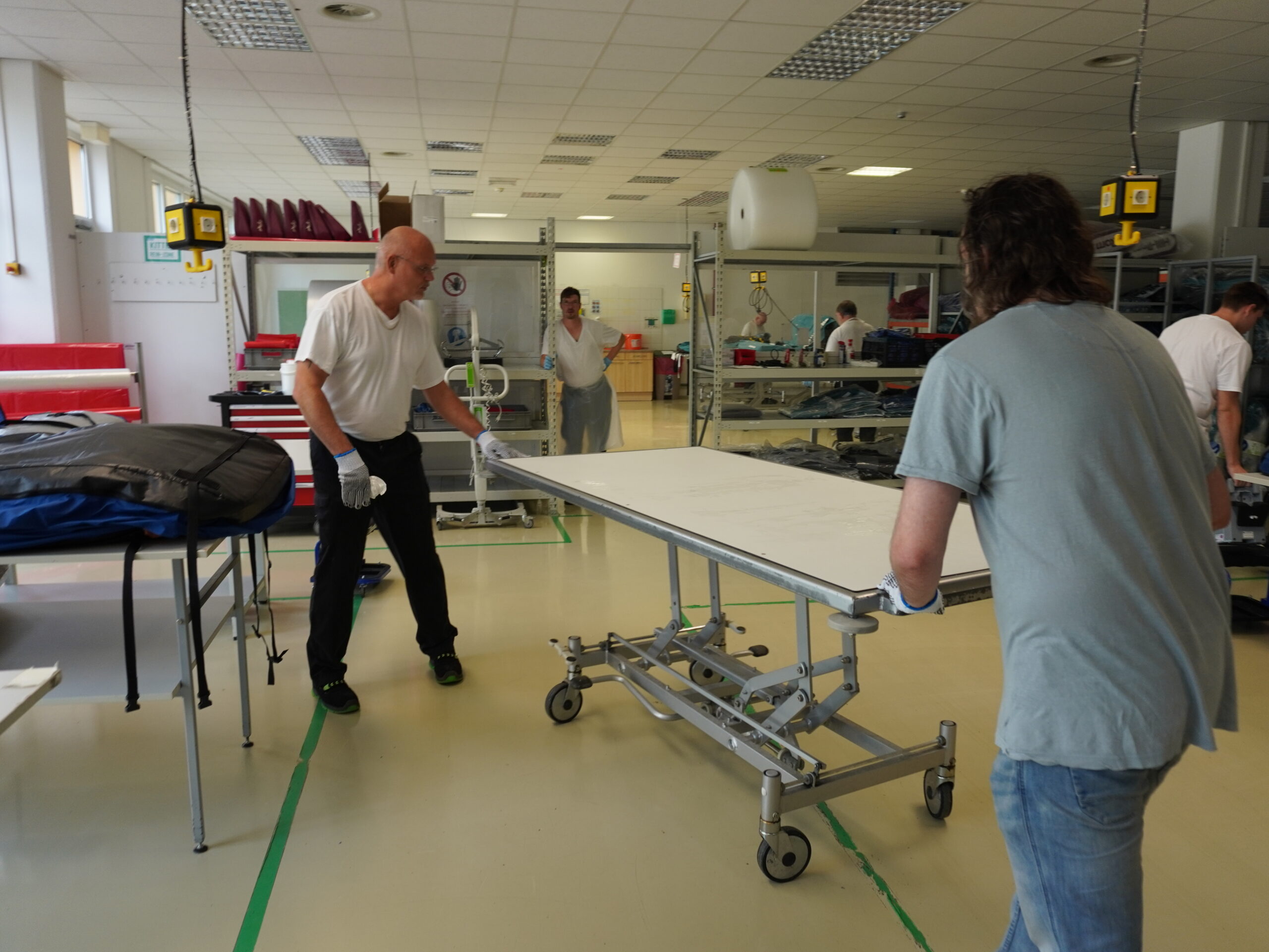 Anschließend durfte er dem Gruppenleiter André Eckardt vom Baxter-Service-Center bei der Klinikbetten-Reinigung und Instandsetzung tatkräftig unter die Arme greifen. Die Spätschicht übernahm Herr Holzmann schließlich im hauseigenen Kunstatelier, schaute dort den Künstler*innen staunend über die Schulter und griff schließlich selbst zu Pinsel und Farbe.