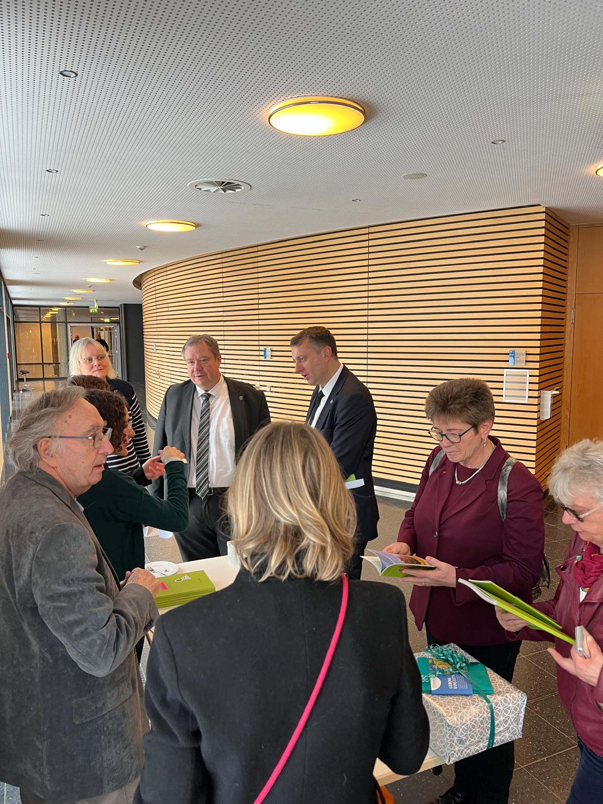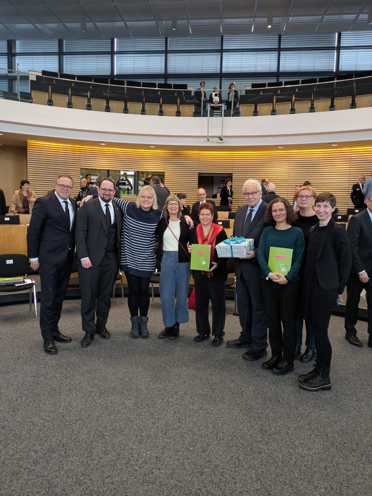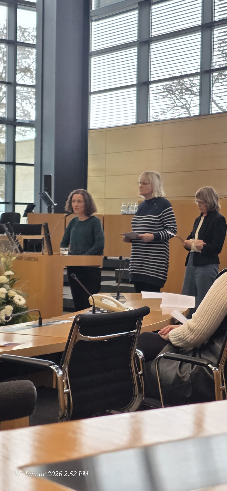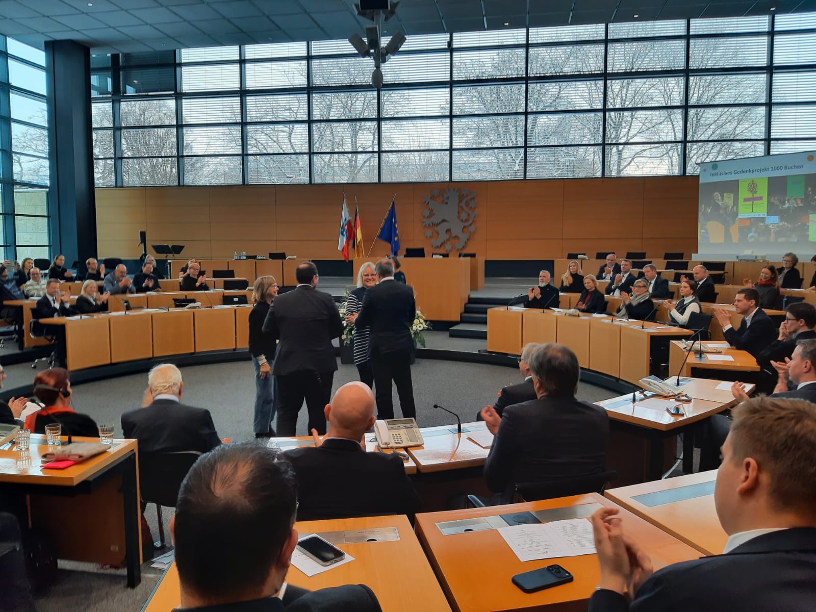 Wir, Dr. Kristin Tolk, Martina Heller und ich, sprachen im Plenarsaal über unser Herzensprojekt: das inklusive Gedenkprojekt 1000 Buchen. Es ging aber nicht nur um unsere Baumpflanzungen, sondern auch um die Verbrechen der Nazis in der Zeit von 1933 bis 1945. Nicht nur Jüdinnen und Juden, sondern auch Menschen mit Beeinträchtigungen galten als wertlos. Darüber haben wir gesprochen. Dieser Moment war sehr emotional und bewegend, denn es waren auch hochrangige Politiker und Politikerinnen anwesend.