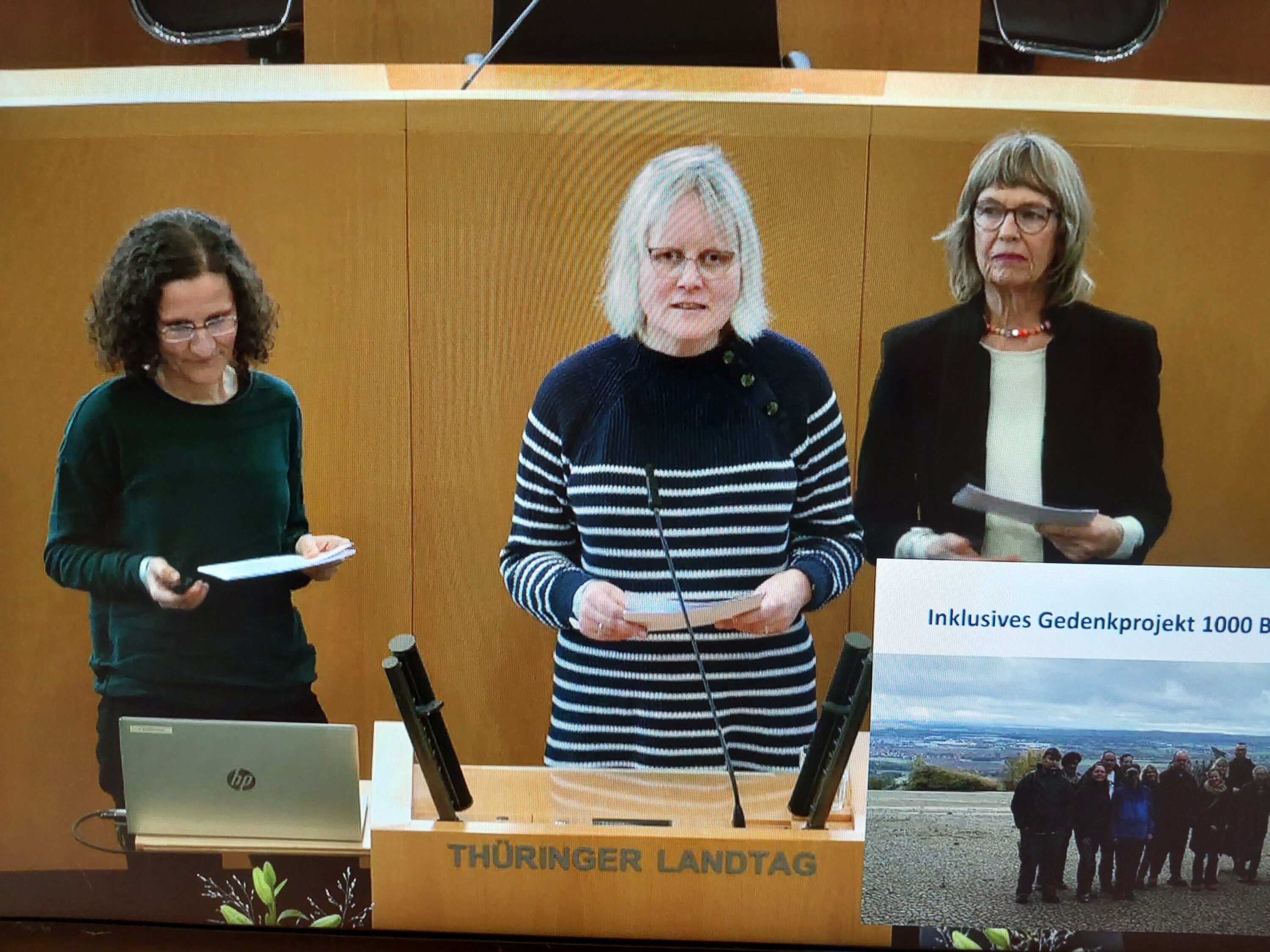 Der 27. Januar 2026 war für die Projektgruppe 1.000 Buchen ein ganz besonderer Tag: Wir haben unsere Arbeit im Thüringer Landtag vorgestellt! Es war der 81. Jahrestag der Befreiung des Konzentrationslagers Auschwitz sowie der Tag des Gedenkens an die Opfer des Nationalsozialismus.