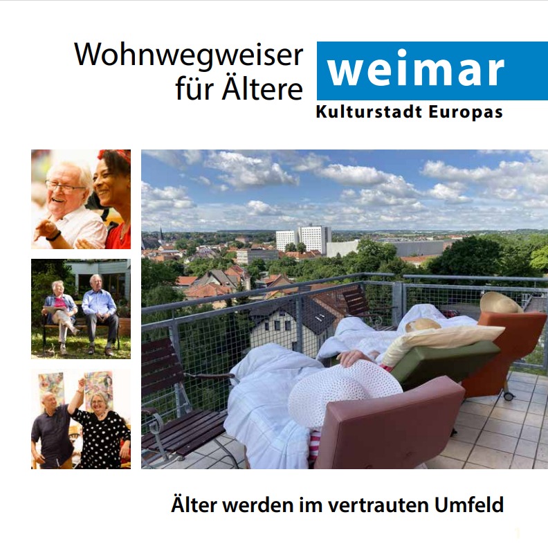 “Der „Wohnwegweiser für Ältere“ wird seit vielen Jahren als Informationsbroschüre mit seniorenrelevanten Inhalten geschätzt. In der Broschüre werden die Angebote für ältere Menschen in den einzelnen Weimarer Wohngebieten übersichtlich dargestellt. Dabei geht es um Wohnangebote genauso wie um seniorenspezifische Themen des Alltags, wie Gesundheit, Begegnung, Freizeit, Betreuung und Pflege. Zur Erstellung der Broschüre wurden alle Wohngebiete hinsichtlich der Belange älterer Menschen genau untersucht. Mit zahlreichen Anbietern und Trägern wurden ausführliche Gespräche geführt.”